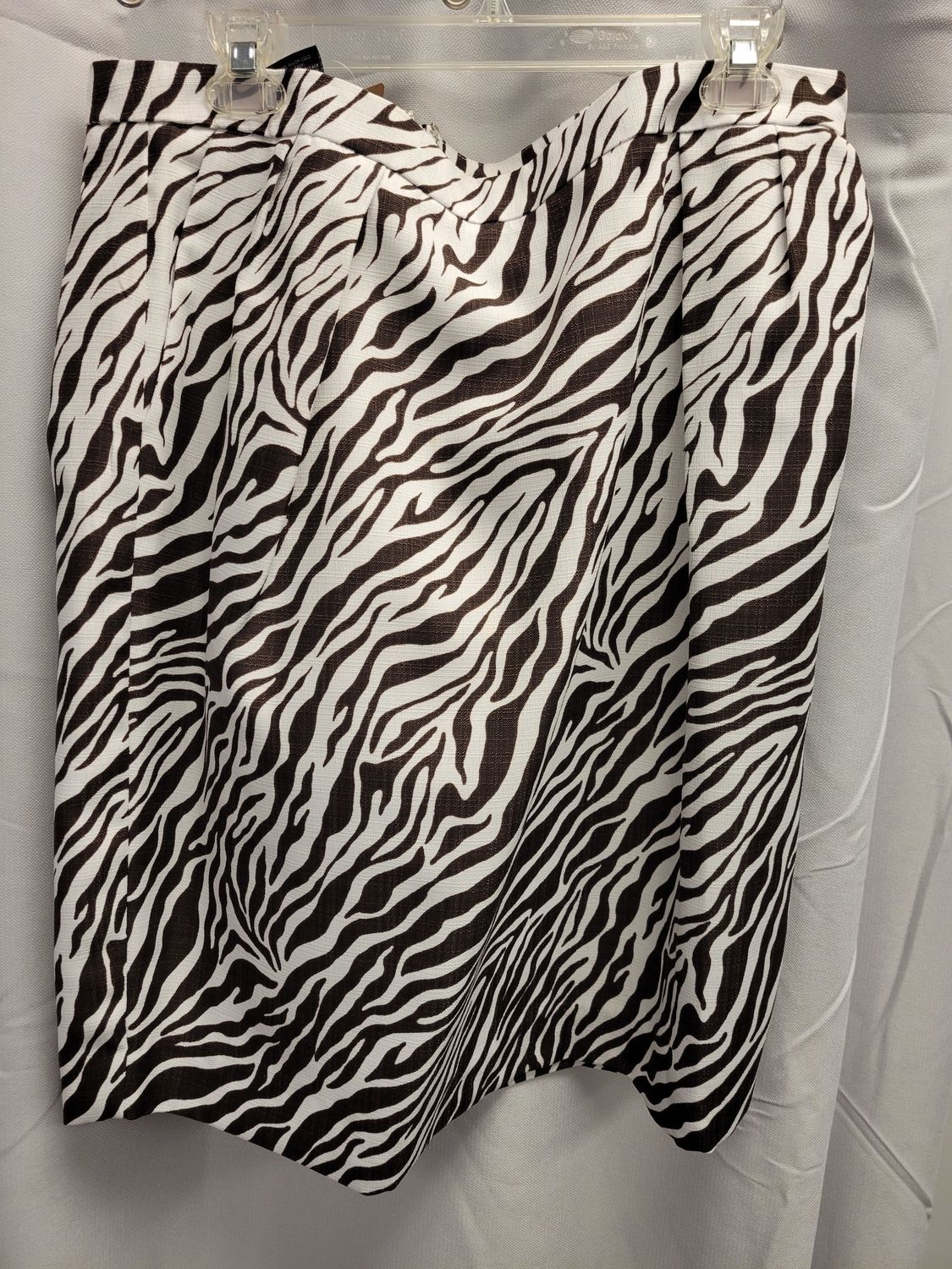 You would be sure to draw "attention" in this dark brown zebra print skirt by Attention. Perfect to pair with a nice sweater and a pair of boots. Pre-owned good condition. Size 16.